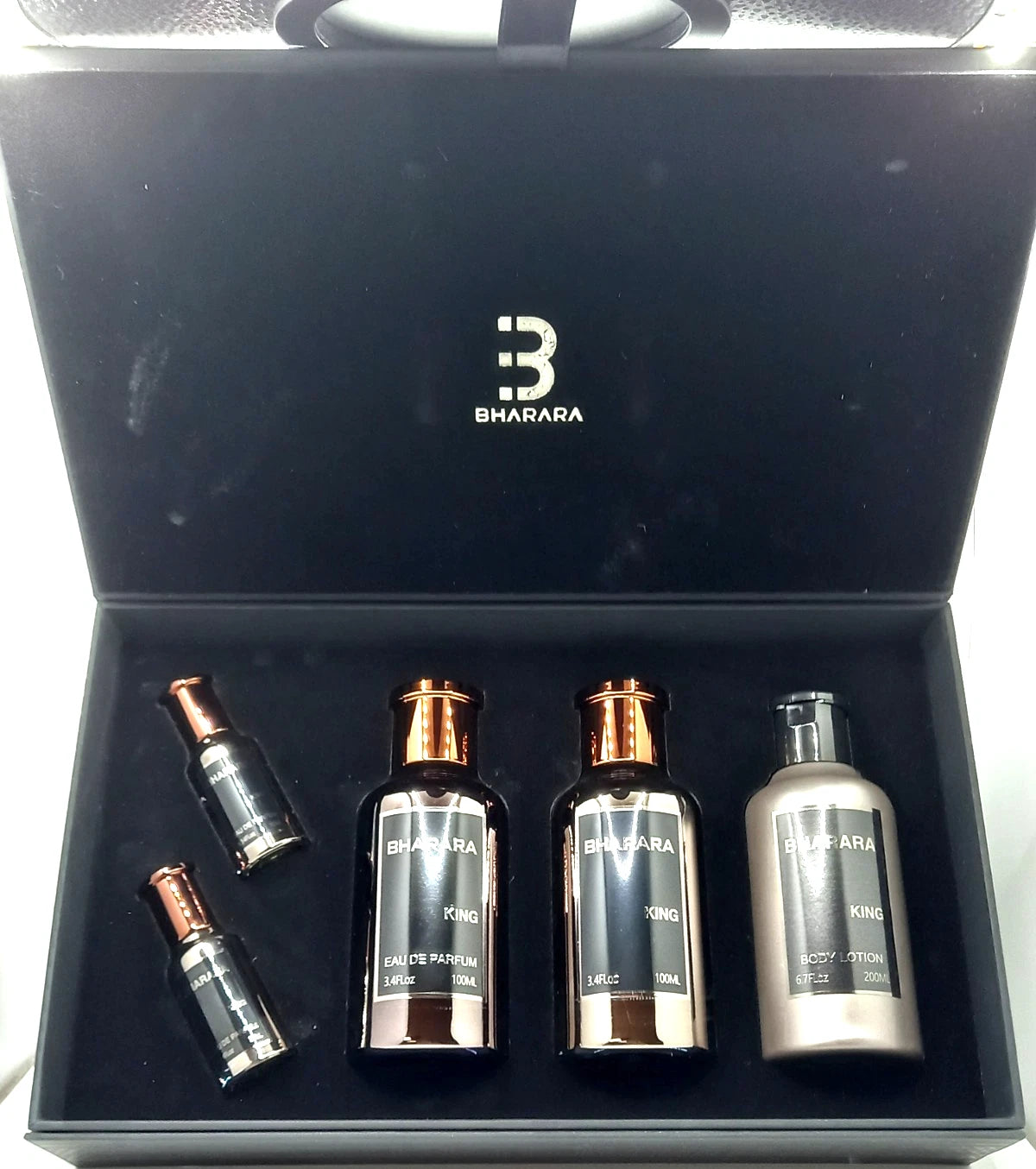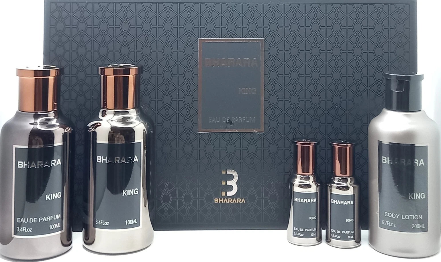 BHARARA KING 5 PCS GIFT SET MEN EDP 3.4 Oz, EDP 0.34 x 2, AFTER SHAVE, B/LOTION!